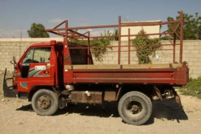 Several times a week SOIL driver Clotes Alexandre starts up the large flatbed truck parked outside the front door of the office and rumbles out into the streets of Port-au-Prince. With the help of SOIL's Drum Collection Team, Davidson Ulysses and Herby Sanon, Clotes works his way through urban neighborhoods and tent cities, collecting the 15 gallon drums used in SOIL's ecological toilets and driving them out to a SOIL composting site where the drums are then dumped and cleaned and readied for redistribution on the next trip. Thanks to a donation from the Rattray Kimura Foundation, SOIL recently transformed this truck, aka "The Poopmobile" into a vibrant celebration of environmental awareness. The back of the truck now reads "Pwoteje anviwonman an se pwoteje tet ou" / "Protect the environment and you are protecting yourself" and "Chanjman tout bon an komanse nan mwen avan" / "Change begins with me". [caption id="attachment_1326" align="aligncenter" width="399" caption="The SOIL Poopmobile in the early days."]