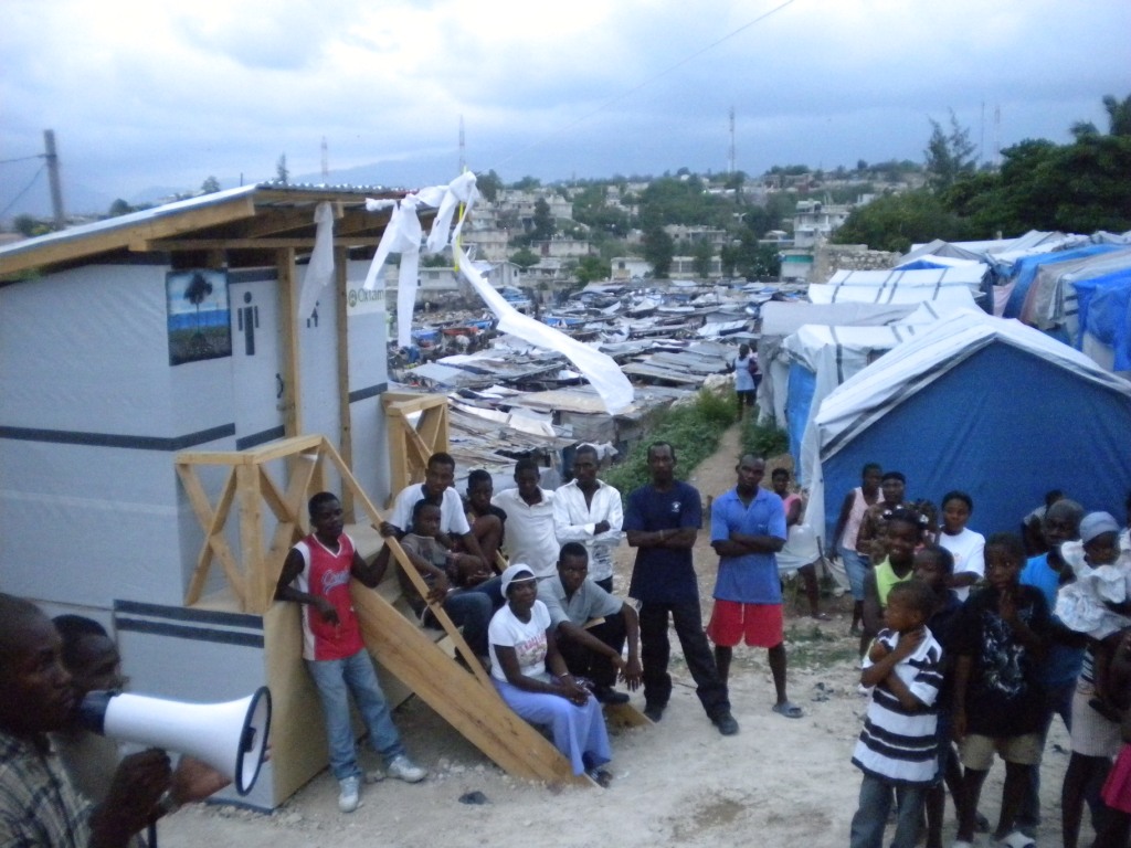 [caption id="attachment_1648" align="alignright" width="300" caption="A SOIL toilet inauguration (an educational event celebrating the opening of a new toilet) in Sant de Refuge Dumorney, Port-au-Prince."]