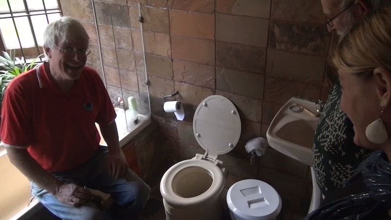 [caption id="attachment_1687" align="aligncenter" width="512" caption="Richard Holden, Peter Morgan and Sasha pay a visit to Richard Holden's Household EcoSan toilet"]