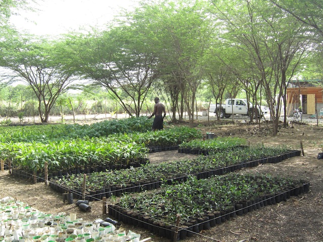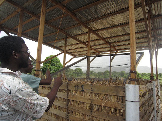 Now Theo is enjoying his new home in the center of our agricultural research station, where he can feast on delicious tilapia, spend his afternoons roaming the nurseries and experimental gardens and share a quiet moment with Huit the cow, Ti Konpos the guard god and Mr. Chankowsky the rabbit.
