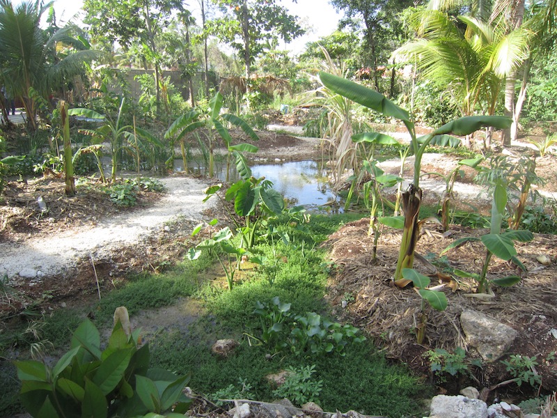 But far and away the best part of our new home is the backyard. Our backyard is like an oasis from the dust and noise of passing traffic. We have over 300 m2 of lush land with a little stream running through. The stream comes through our neighborhood, under the soccer field next door and miraculously surfaces in our backyard. Our amazing volunteer consultant, Eric (who is a bit of an eco-landscaping genius) has managed to transform the yard from an overgrown, mosquito-breeding marsh into a rich ecosystem with native plants, tadpoles, minnows and even a heron! Plus over 5000 gallons of compost!
