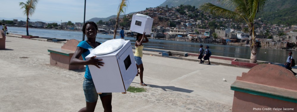 [caption id="attachment_2610" align="aligncenter" width="584" caption="Carrying a new SOIL household EcoSan toilet home in Shada, Cap-Haitien."]