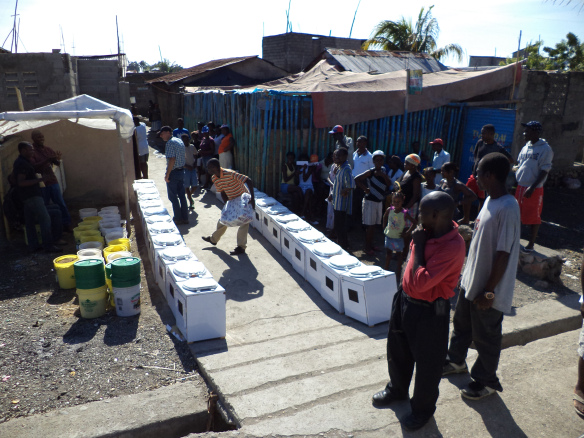 [caption id="attachment_2607" align="aligncenter" width="539" caption="Carrying SOIL household toilets into the Shada neighborhood of Cap-Haitien."]
