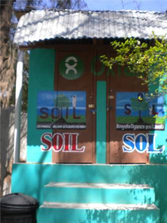 I learned that Park Izmery, the soccer field just across the street from where I write, used to be a crowded tent camp, and the toilet there was the first SOIL toilet built in Port-au-Prince following the earthquake. It was there that the SOIL team, recently arrived from Cap-Haitien, met Jimmy, Herby, and Pierre-Marie, who were serving on the Park Izmery Committee. It was with their help that SOIL built the first camp toilet, an elevated double-vault EcoSan latrine. The three became dedicated SOIL volunteers, and are now among my co-workers here in the office. I highly recommend taking a few minutes to read the incredibly moving full version of the story.