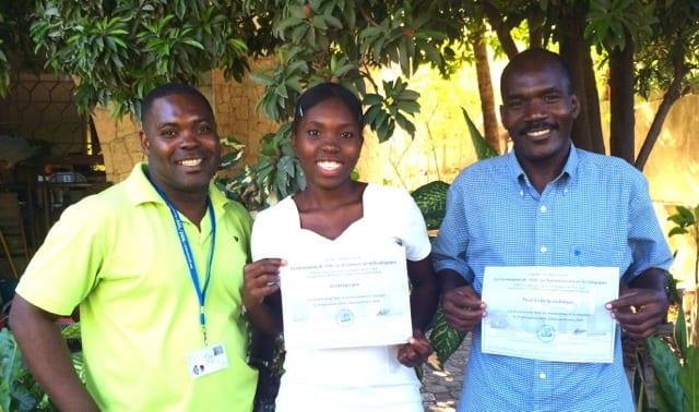 SOIL Regional Sanitation Director Baudeler Magloire with Juslaine Aristil and Mauricette Jean Bidner, two participants in our World Toilet Day workshop.