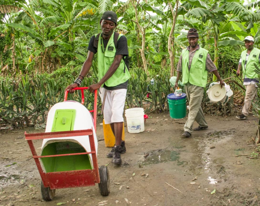 For community members of Nan Bannann and Fort Saint Michel, however, beginning to use EkoLakay’s service costs 200 Haitian gourdes (just over 3 USD) that they hadn’t previously had to pay each month because they didn’t have a toilet to flush, period. Without an in-home toilet, families were forced to go in a bag (a "flying toilet") or use a nearby ravine or empty lot, often in the early hours of dawn when some discretion was possible. That waste contaminated the environment, including the groundwater that people use for bathing, washing, and cooking food. Now, not only will safety risks for these families be mitigated, the resources of that waste will go back to the earth as safe and organic compost.