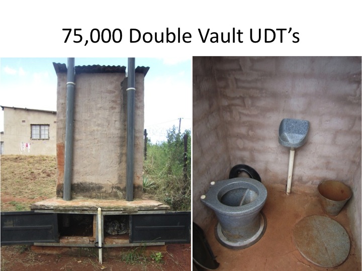 I thought the toilets were good for many reasons: A good design. Easily access to the rear of the vaults and easy transfer of UDT seat. A urinal for men discourages them from peeing into the toilet, which wets the chamber below and causes odour and attracts flies. The toilet I visited did not smell.