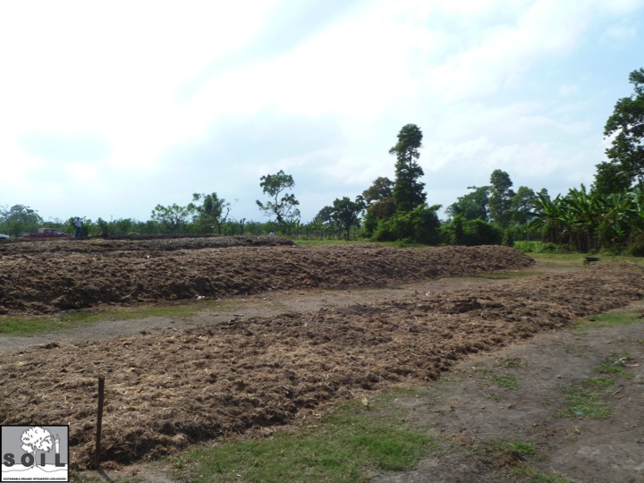 There are many examples of traditional composting in Haiti. This photo is from a compost site in northern Haiti just outside of Cap Haitien that is managed by Gran Marnier. The compost is made from cow manure and sugarcane bagas and is used to fertilize the orange plantations. Because this system does not contain pathogens from human wastes it is not necessary to obtain high temperatures throughout the pile so only a simple design is required.