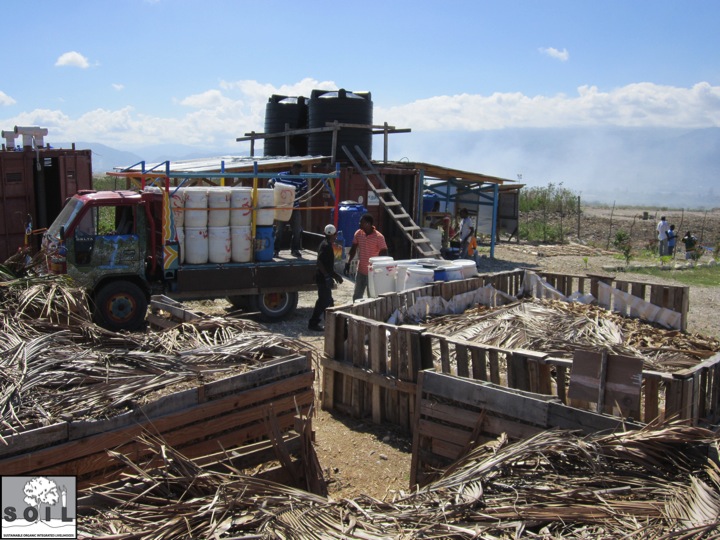 Apre sa ekip konpos la vide doum yo nan bak yo epi kouvri yo ak bagas kann. Foto sa te fet yon jou kote nou te fe tout ekip la net al vide nan sit la. Se yon jan pou fe nou tout sonje ki travay ki pi enpotant pou operasyon SOIL yo kontinye byen.