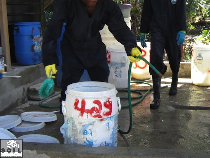 Many of the presentations in this conference have focused on toilets with double chambers for treating wastes. However, we also talked about the risks that the wastes in the chambers are not fully treated and when emptied can still contain pathogens. This is the reason that SOIL always recommends that if the wastes removed from the toilet are to be used in vegetable gardening, they should be treated using some sort of a secondary composting process.