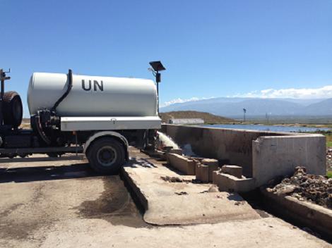A UN vehicle dumps their waste water at the new sewage treatment plant in Morne Cabrit.