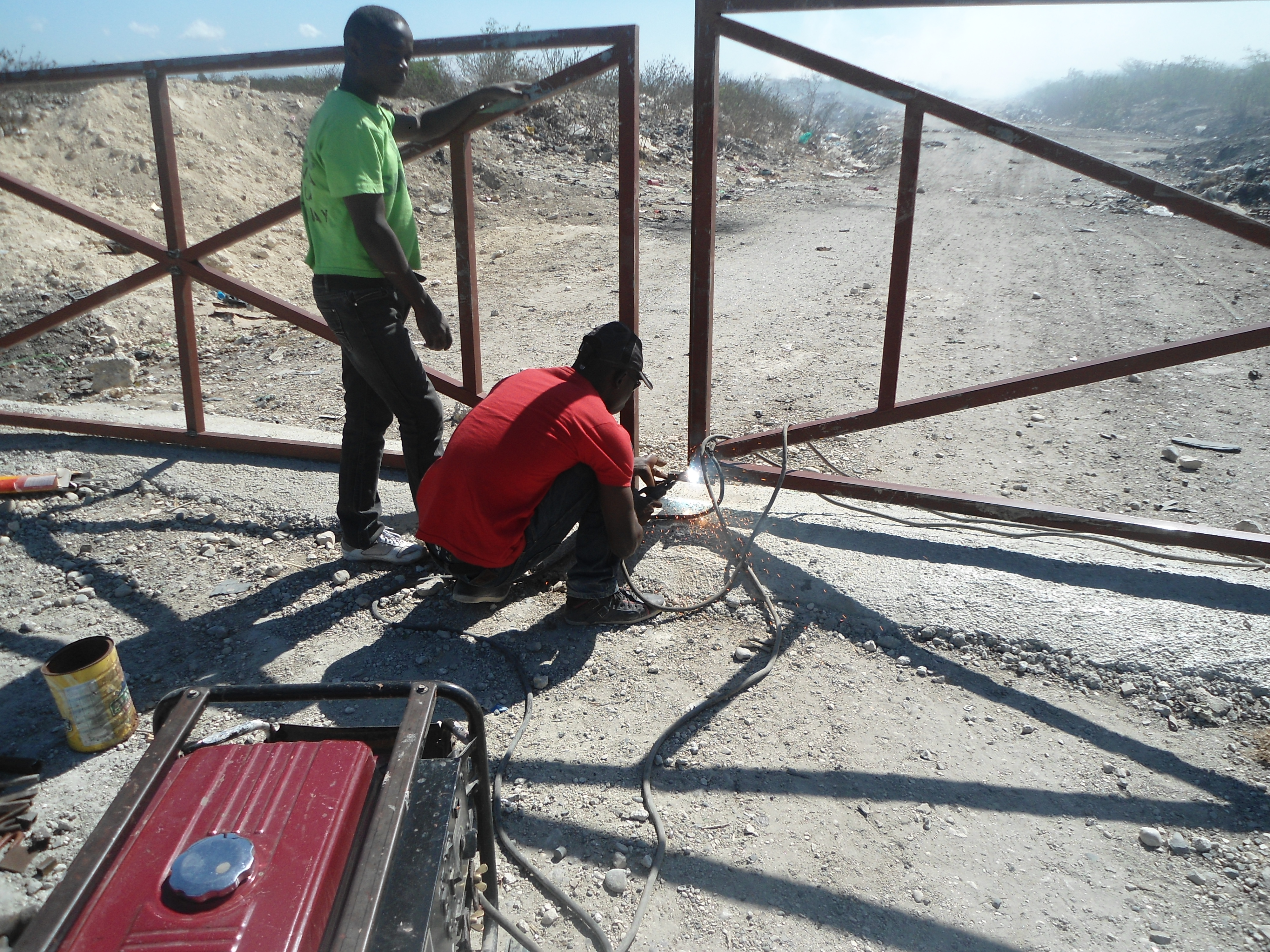 Constructing a new gate to prevent garbage trucks from dumping on the road to the SOIL site.[/caption]