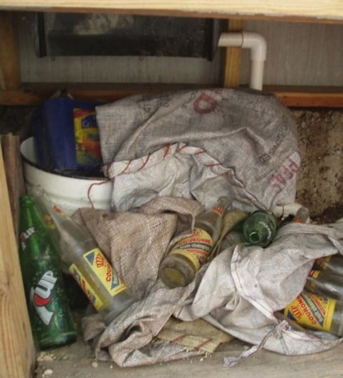 An abandoned latrine now serves as storage for recycling in La Gonave, Haiti.[/caption]
