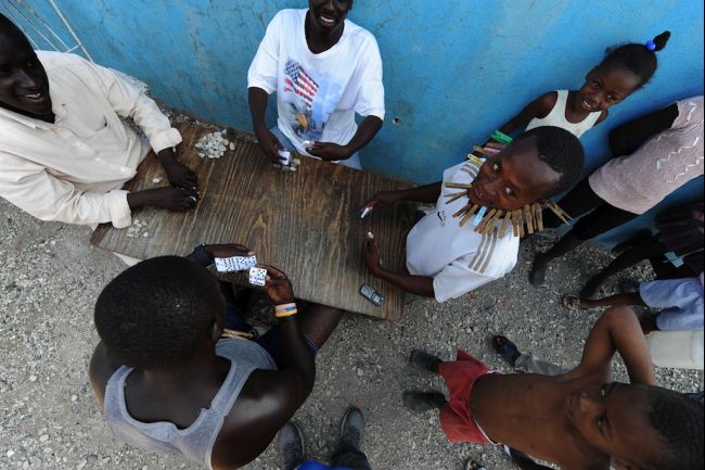 People play in a camp for survivors of the January 2010 quake in Haiti which killed 250,000 people, on February 28, 2013 in Port-au-Prince. The UN has in Haiti a huge mission of peacekeepers led by Brazil, helping the impoverished country with its political strife and the impact the devastating 2010 quake. Hundreds of thousands are still living rough in squalid makeshift camps, and they now face rampant crime, a cholera outbreak and the occasional hurricane. (VANDERLEI ALMEIDA/AFP/Getty Images)[/caption]