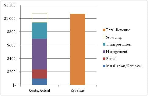 Figure 2 Comparison of revenue with actual costs. Actual costs include direct and indirect expenses, as well as the avoided cost of servicing.[/caption]