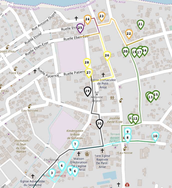 How long does it take to get to each house and what’s the most efficient path between them? Is there one SOIL service zone that might work better broken down into two, or should we be combining two zones that we current service separately? What’s the fewest number of trips needed to service all of our customers when the number of containers might vary from house to house? Our team of researchers and data scientists have been asking these questions and building an open-source software that incorporates data like vehicle cost per mile and carrying capacity to calculate the best route. Once that’s done? It’s transformed into a map that our EkoLakay team members can follow as they head out for the day.