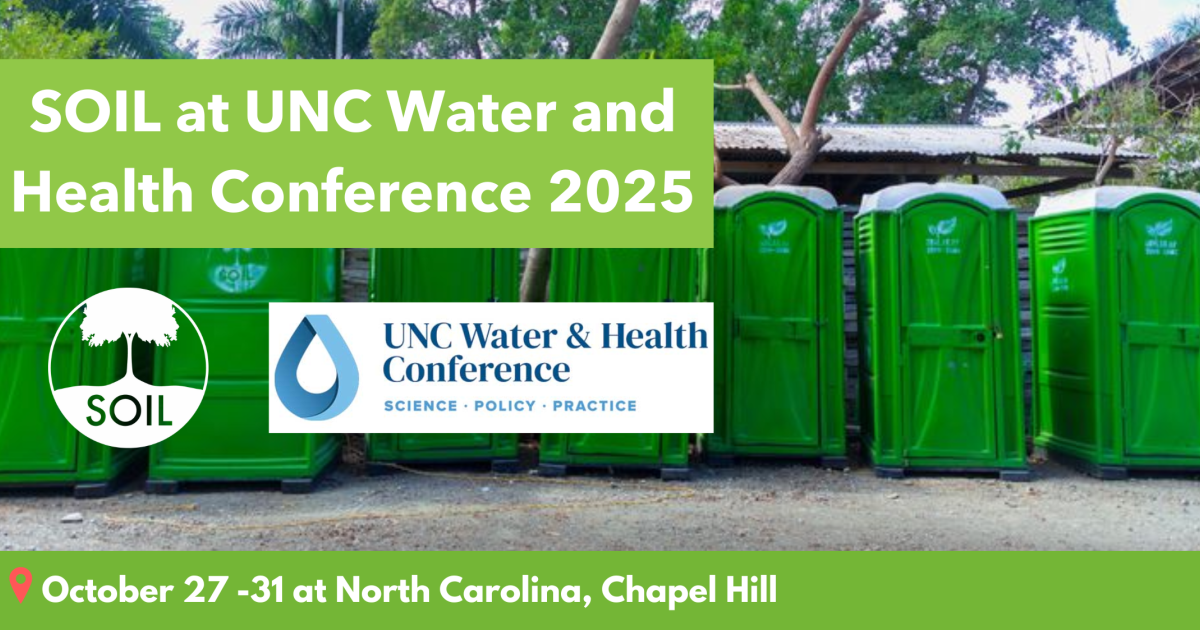 We are excited to announce SOIL’s participation in the 2025 UNC Water and Health Conference. SOIL’s Executive Director, Dr. Sasha Kramer, and Director of Research and Innovation, Maya Lubeck-Schricker, will be in attendance to showcase our ongoing efforts and progress towards accelerating universal access to safe sanitation.